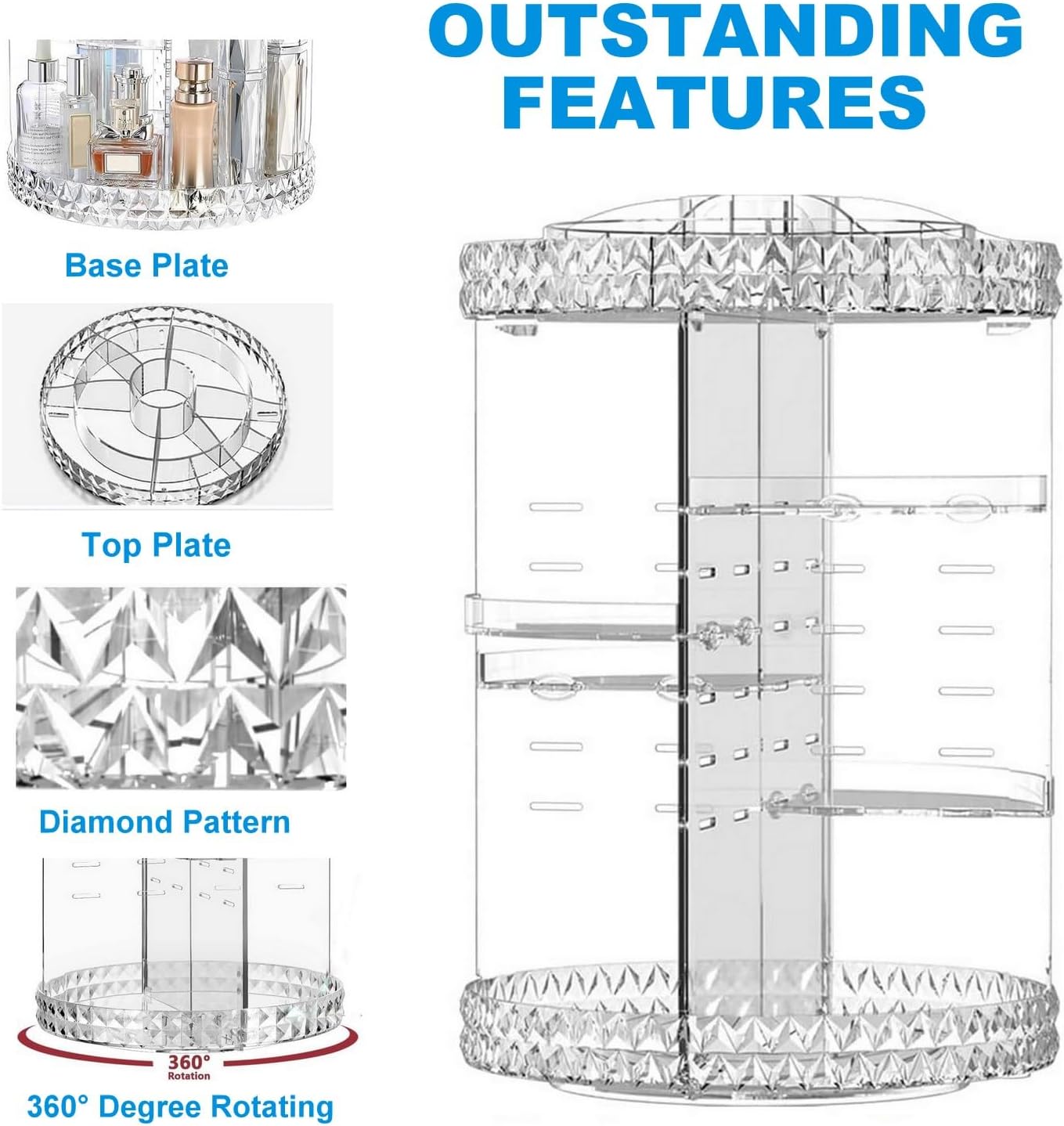 - 【STURY & DURABLE】: AUKOMER Rotating Makeup Organizer is made of high quality acrylic, supported by stainless steel beads and non-slip pads, ensuring the Cosmetic Storage Display Case stable and durable.