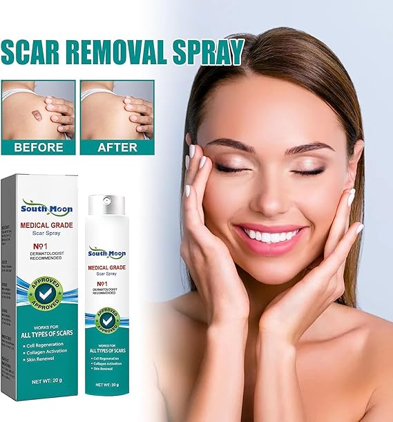 South Moon Medical Grade Scar Spray – A dermatologist-recommended formula designed to visibly reduce scars by promoting skin regeneration and collagen activation.